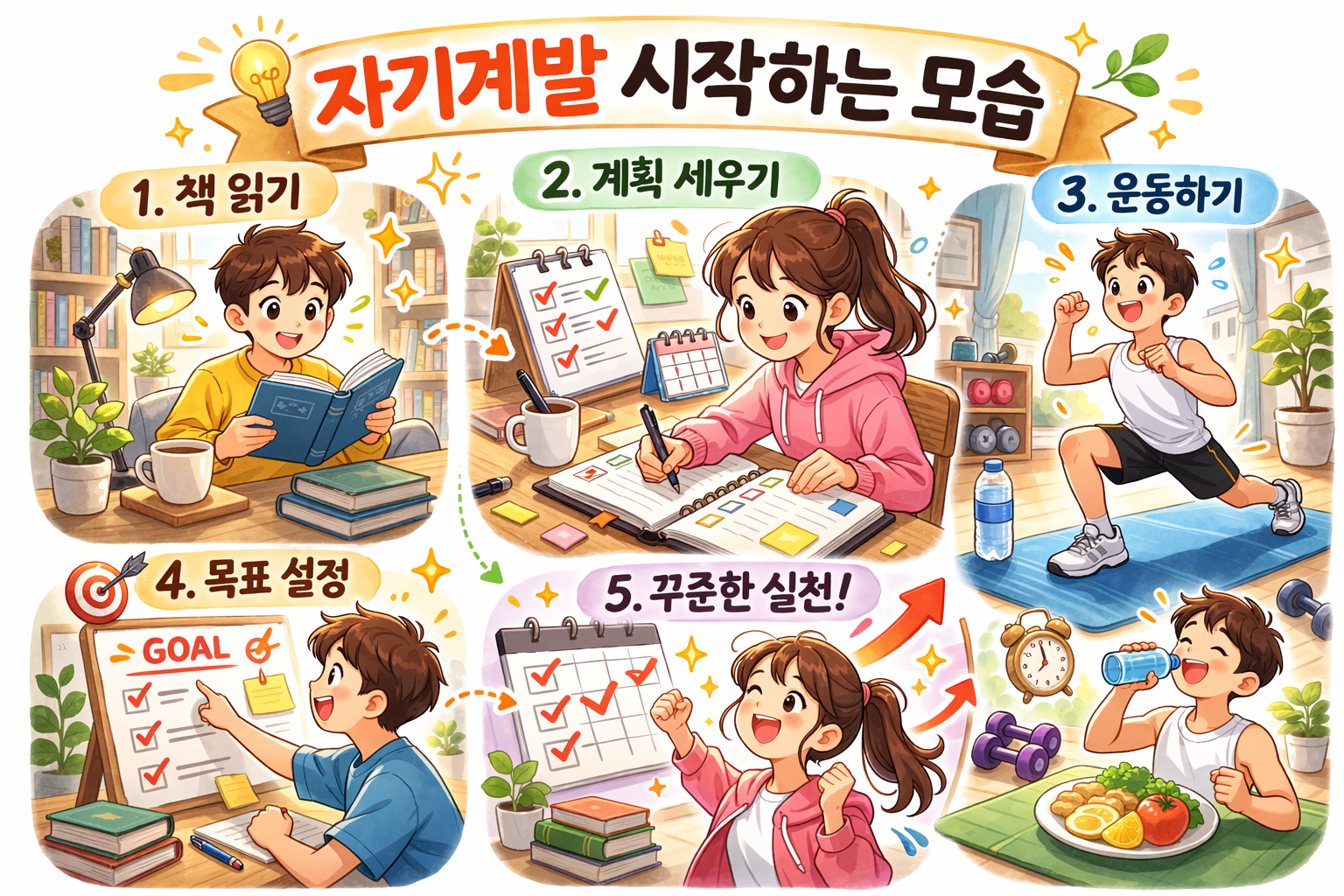 자기계발을 시작하는 데 특별한 준비는 필요 없습니다. 오늘, 지금 이 순간부터 할 수 있는 것들입니다.